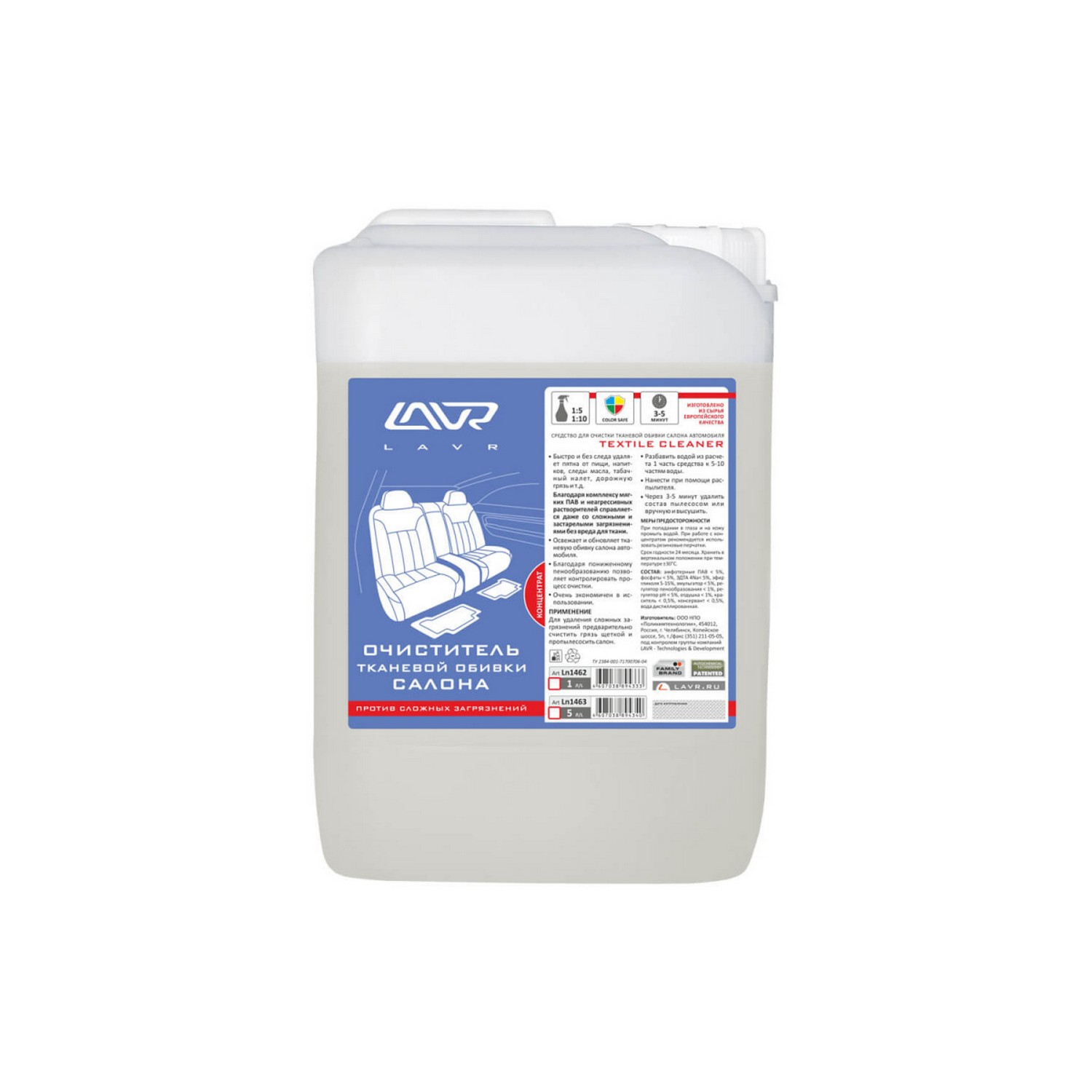 Очиститель тканевой обивки LAVR салона концентрат 1:5 - 10, 5 л/Ln1463 *1