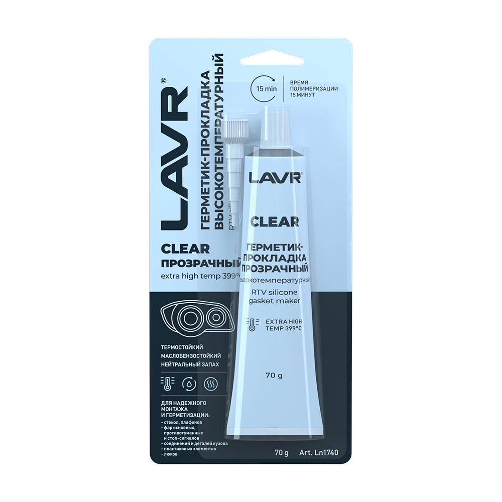 Герметик-прокладка LAVR Clear, высокотемпературный, 70 г, прозрачный