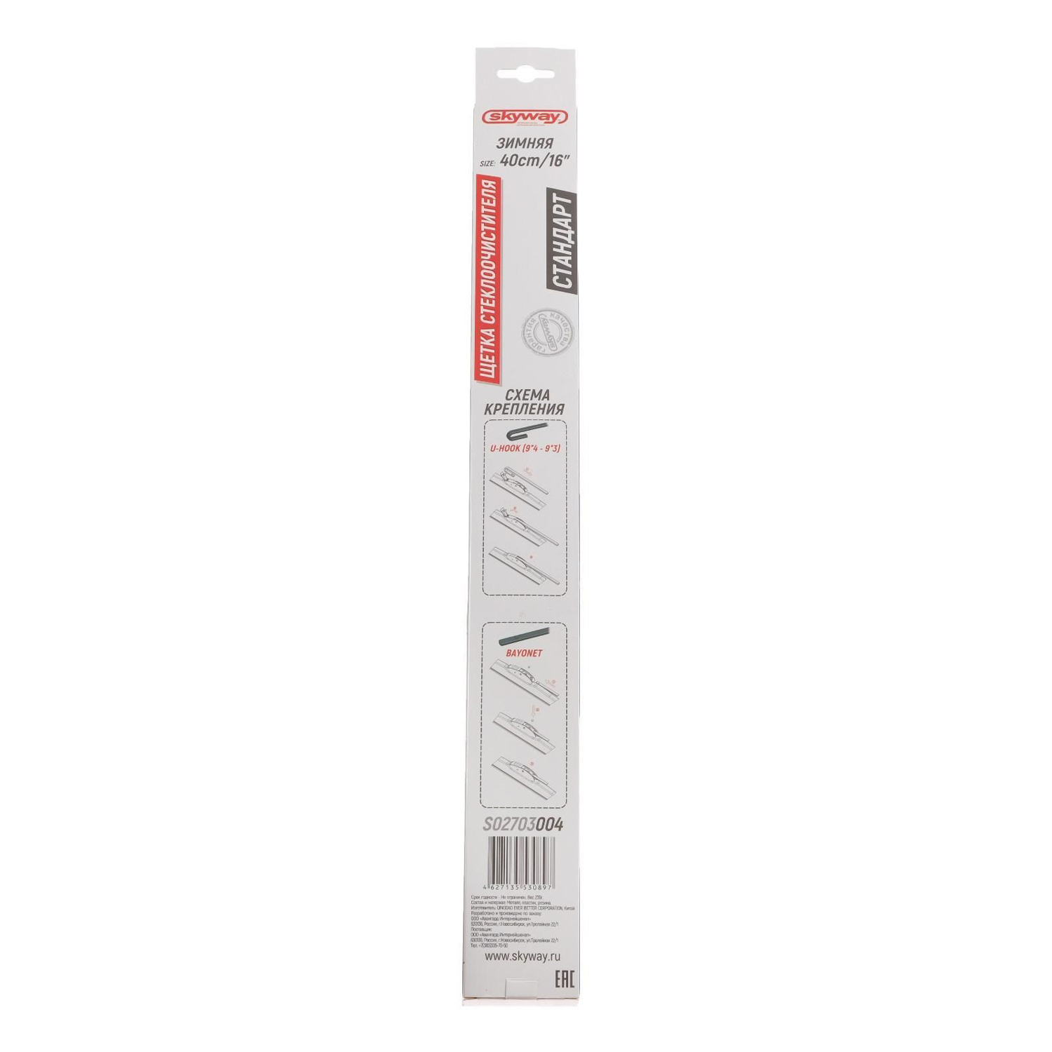 Щетка стеклоочистителя Skyway стандарт, 16"/400 мм, каркасная, зимняя 3252508