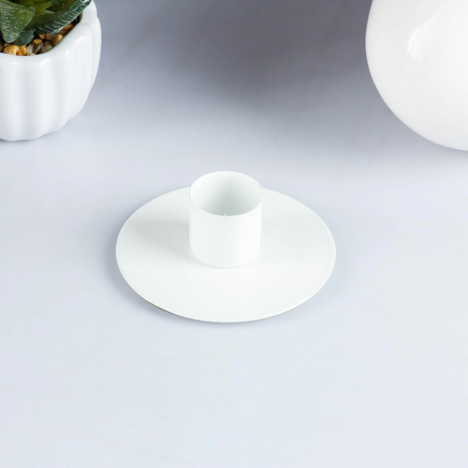 Подсвечник металл на 1 свечу "Круг", 3х7 см, белый 1595956