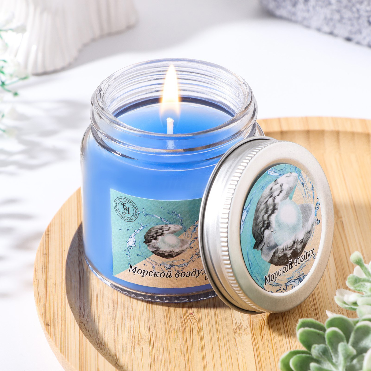 Свеча ароматическая в стекле 6,3см, 100мл, морской воздух 9338120