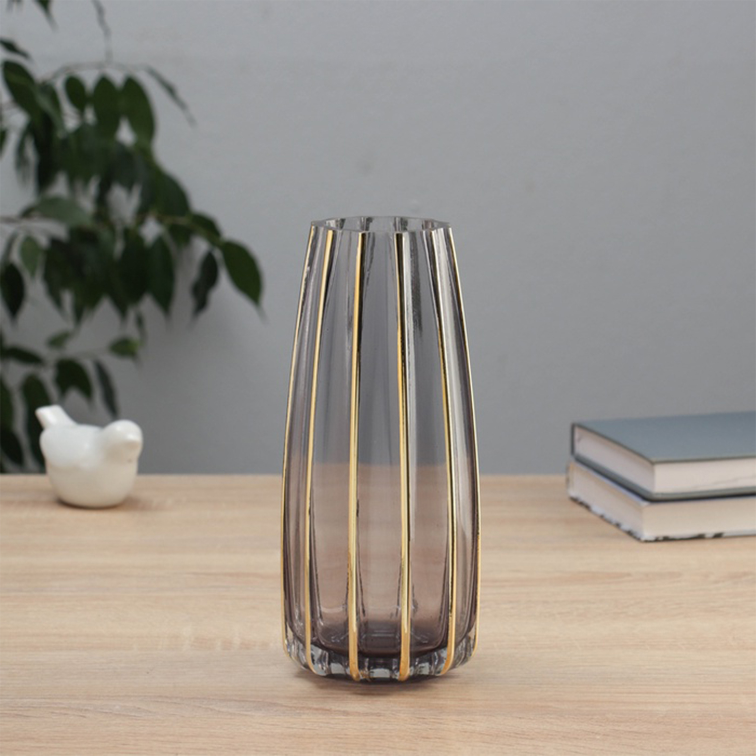 Ваза «Милагрос», классика полосы вертикаль, d=6 см, 21×9 см, стекло, серая