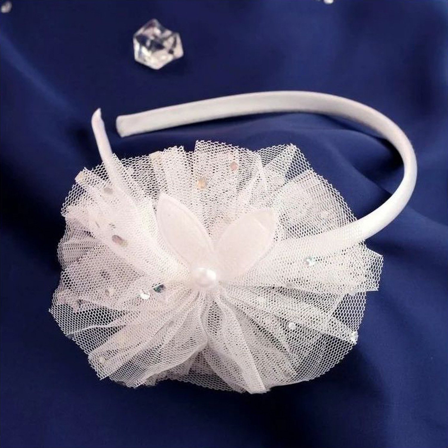 Ободок для волос "Малышка" 1 см ушки, пышный бант, белый 4447103