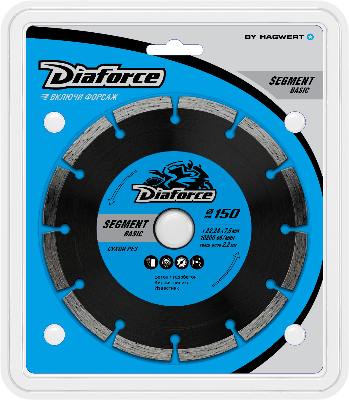 Диск алмазный 150*22,23*2,2мм по бетону/кирпич сегмент сух.рез арт.510150 Segment Basic Diaforce *1/10/50