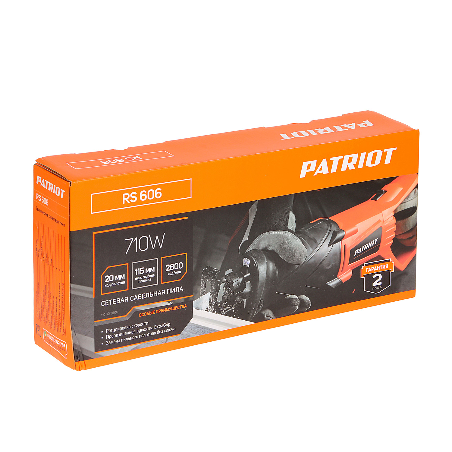 Пила сабельная 710Вт 2800ход/мин глуб.пропил. дер/мет 115/6мм ход20мм плав.пуск RS606 PATRIOT *1/6