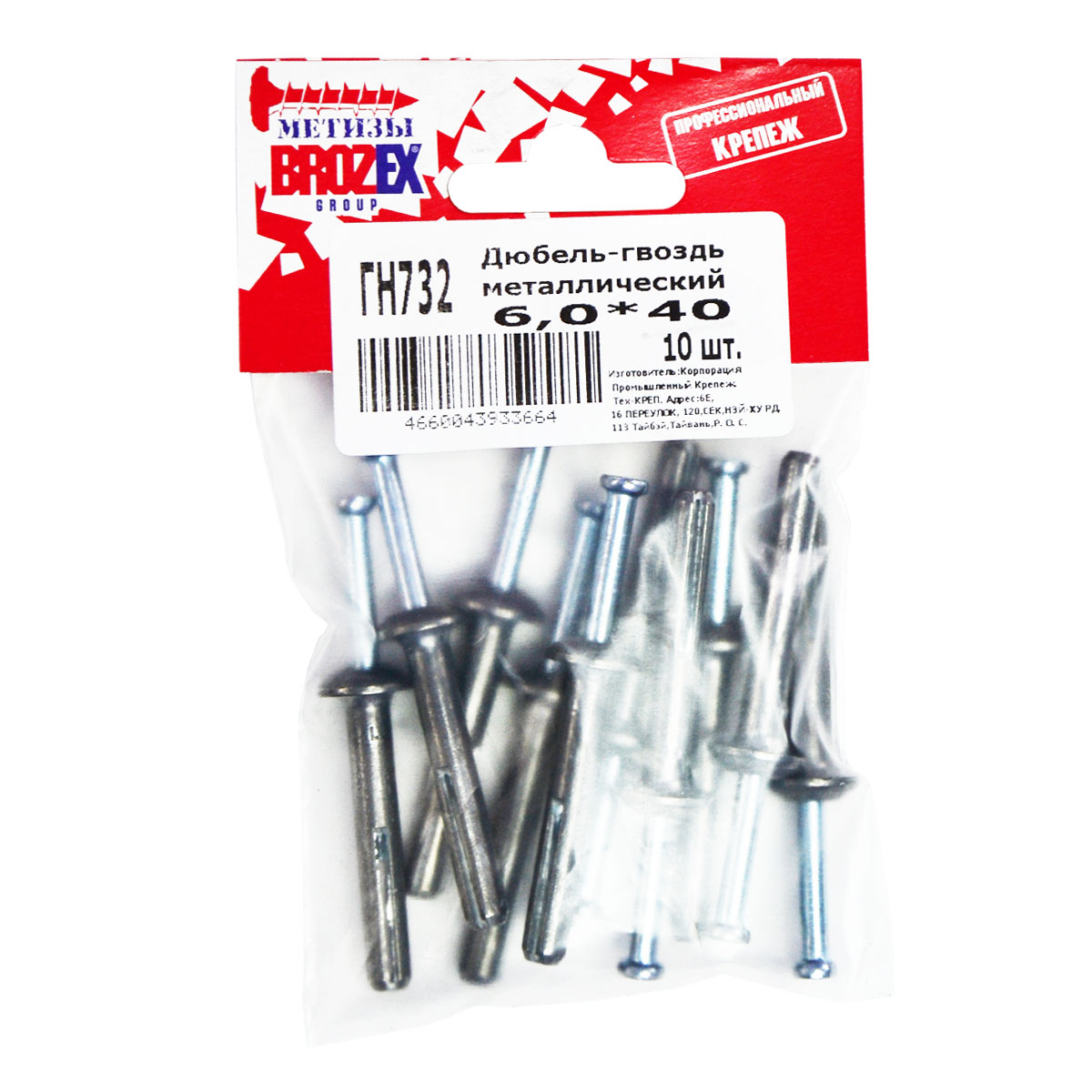 Дюбель-гвоздь 6,0*40 металлический BROZEX пакет (10шт) *10/100