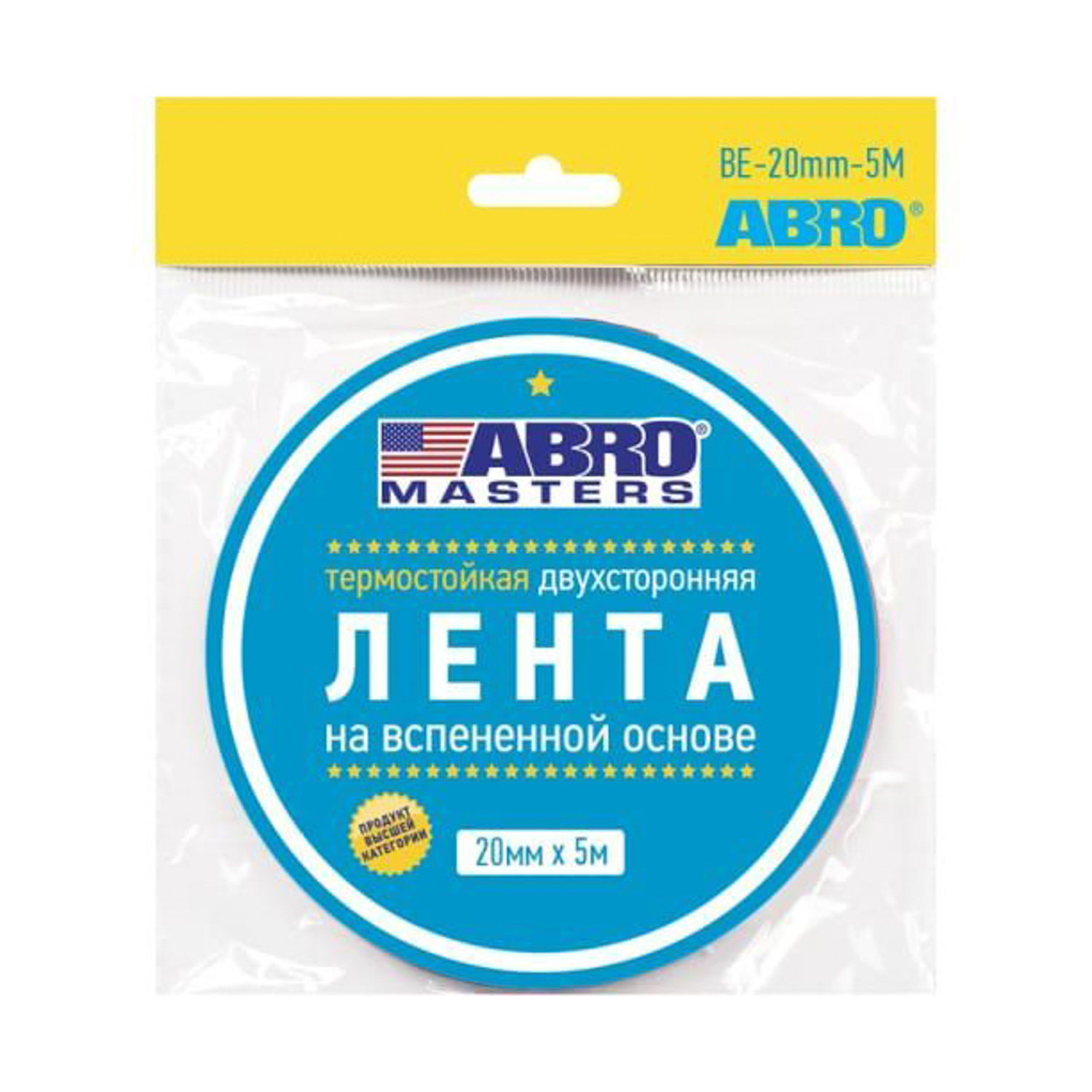 Лента клейкая двусторонняя на вспененной основе Термост. Черная 20мм х5м BE-20mm-5M "ABRO" *1/450