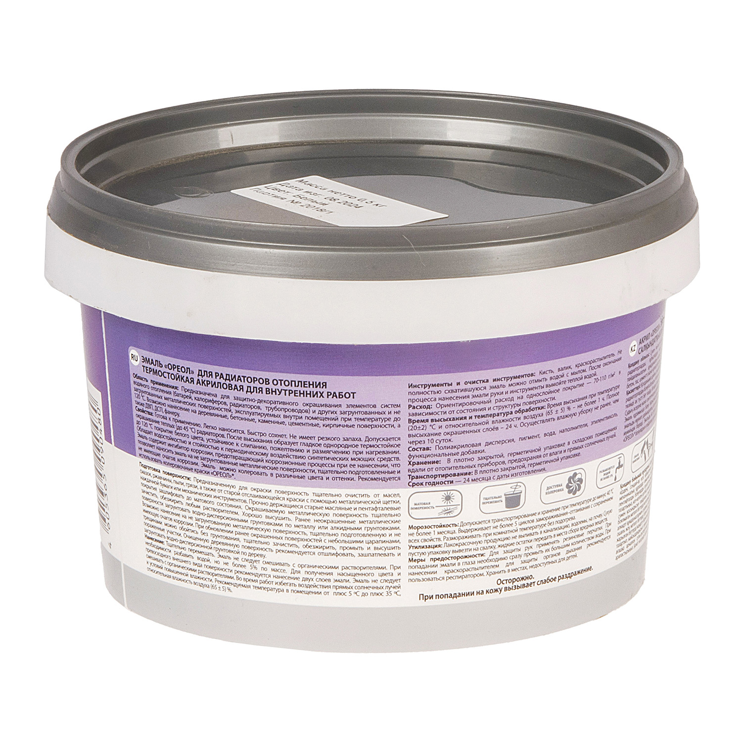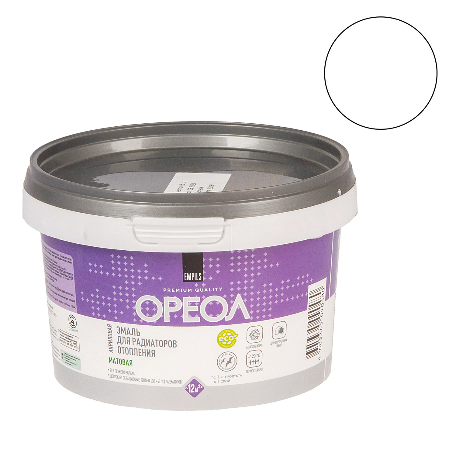 Эмаль для радиаторов акриловая белая матовая 0,5 кг Ореол *8/480