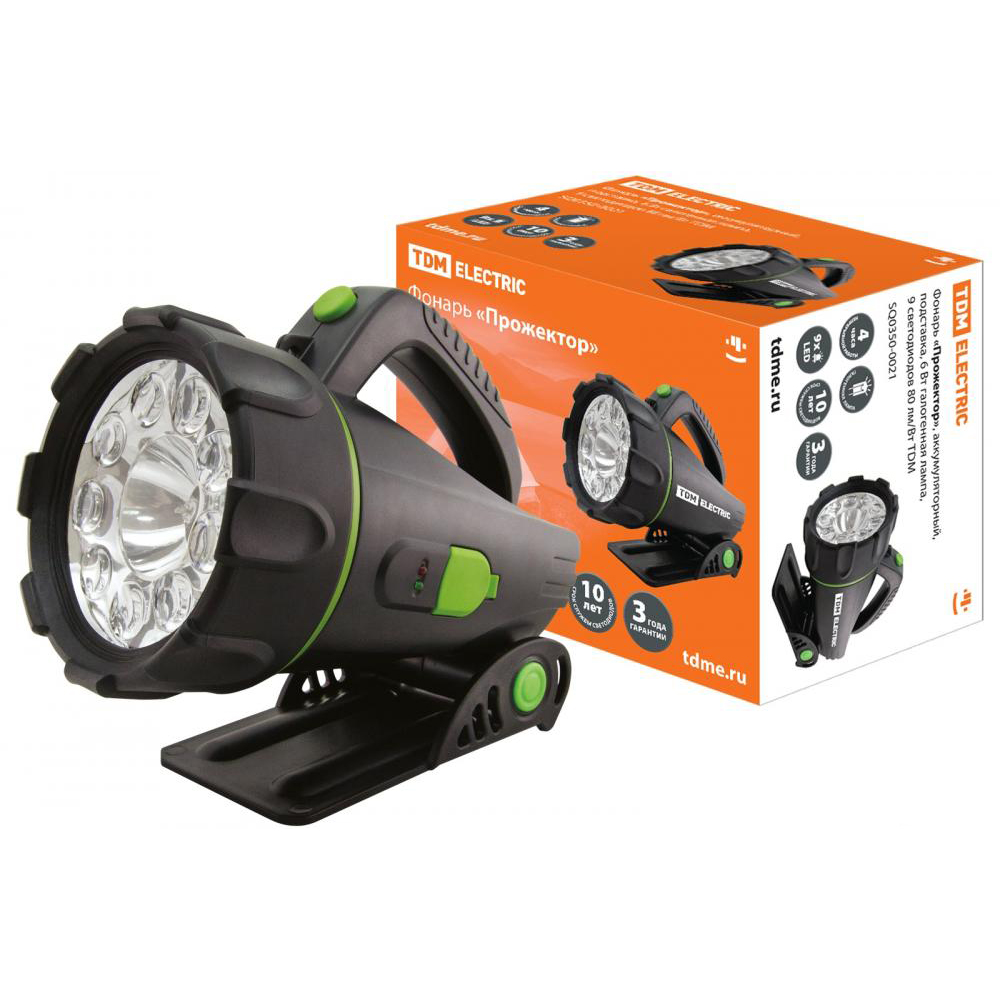 Фонарь Прожектор TDM аккумулят. 6вт, 9 светод. 80 лмВт SQ0350-0021