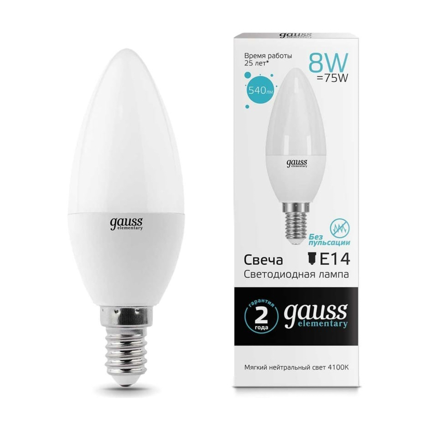 Светодиодные лампы Gauss Elementary Candle созданы в форме свечи. Лампы подойдут как для домашнего, так и для коммерческого использования. Такой тип освещения прекрасно смотрится в светильниках без плафонов или устанавливается в люстры и бра. Модель обладает широким диапазоном цветовых температур и мощностей, что поможет создать атмосферу тепла и уюта или концентрации. Равномерный спектр света создает зрительный комфорт в любом помещении. Данный тип освещения от Gauss обеспечивают стабильную работу в течение всего срока службы.