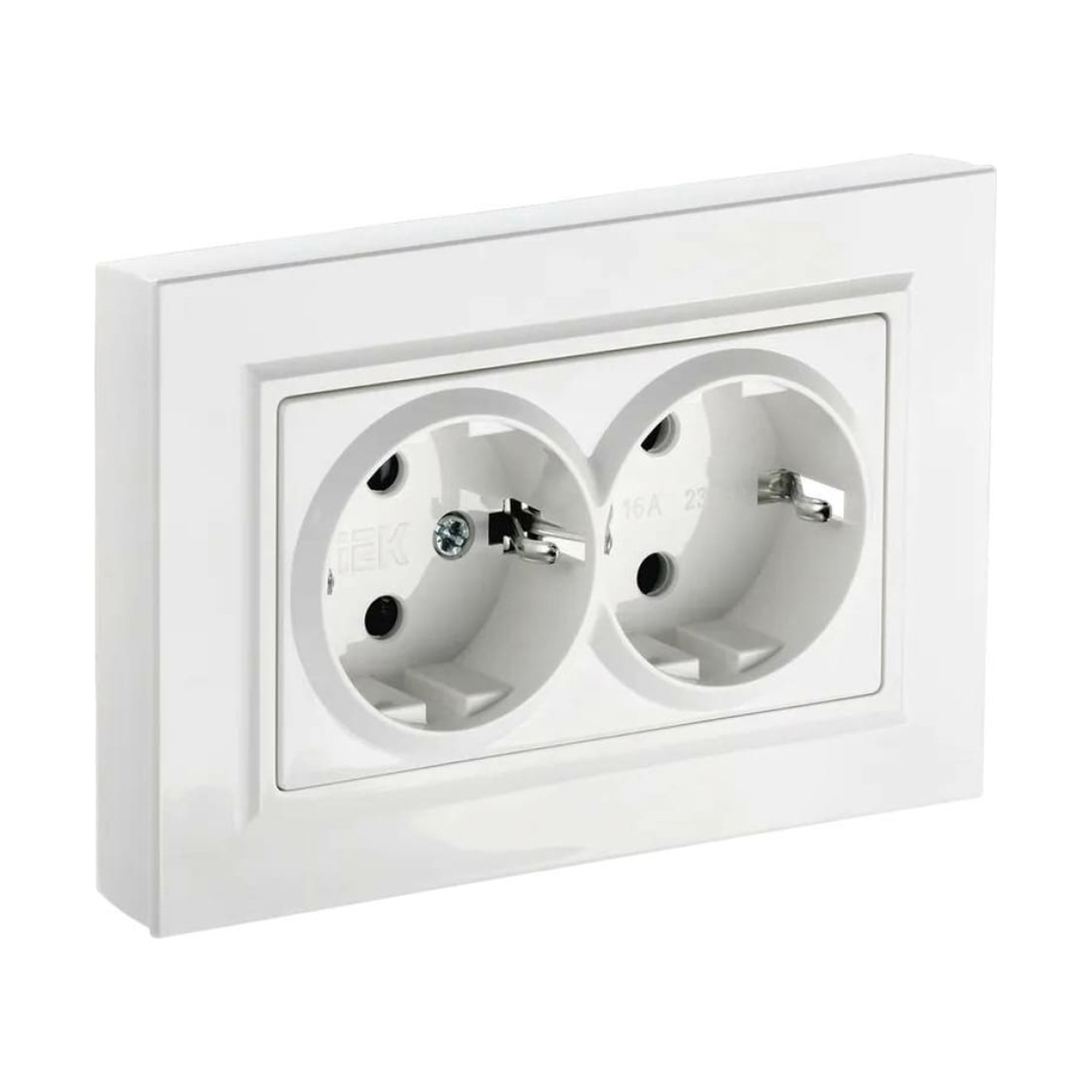 Розетка "BRITE" 2-мест. белая с заземлением 16А IEK BR-R21-16-K01-F *10/100