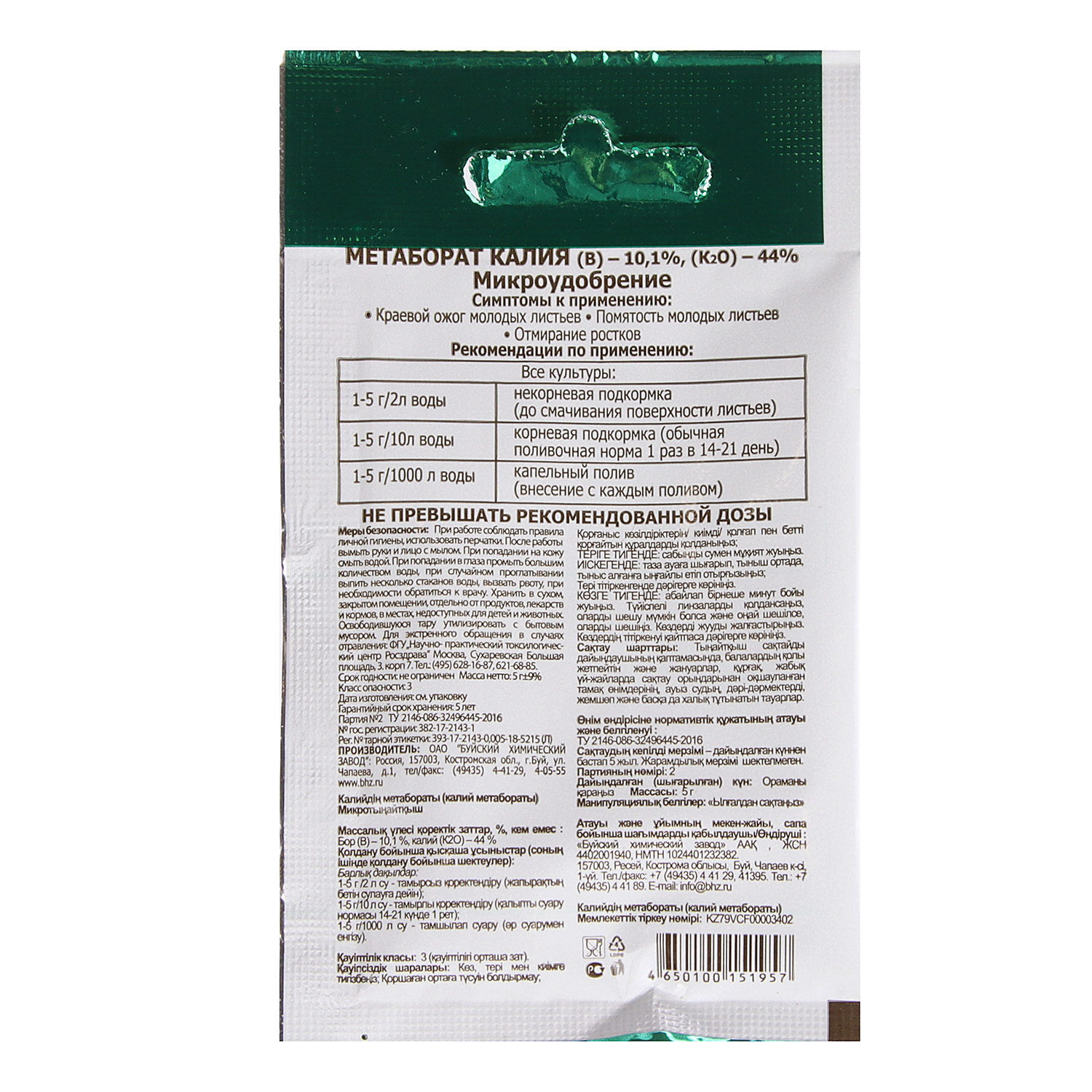 Удобрение метаборат калия Буйские удобрения, 5 г