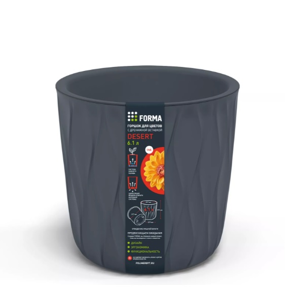 Кашпо пластм. "Desert" 6,1л d верха 217мм h211мм со вставкой Серый 86605 *1/10