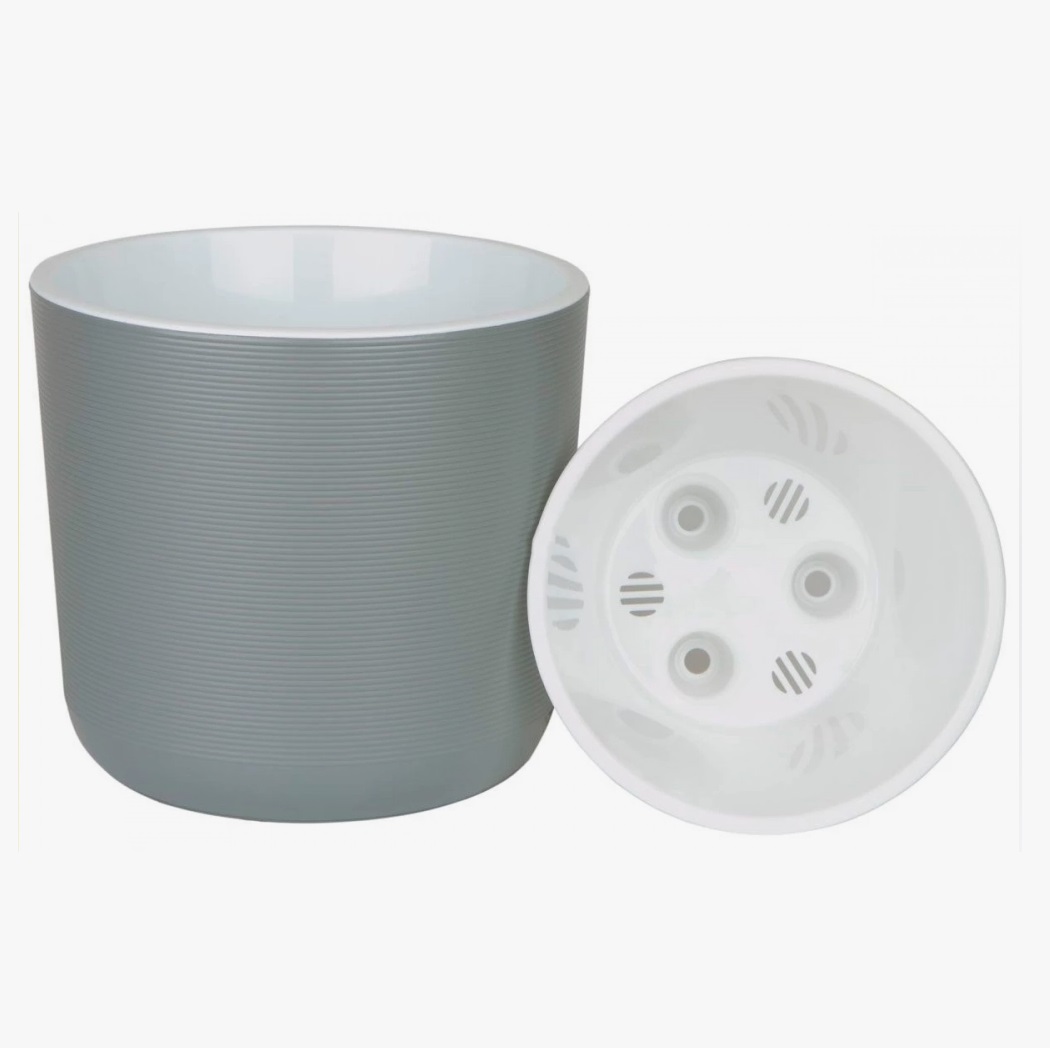 Кашпо пластм. "Лион" 5,6л d верха 210мм h195мм со вставкой Серый муссон ЛИ21-70 *1/4