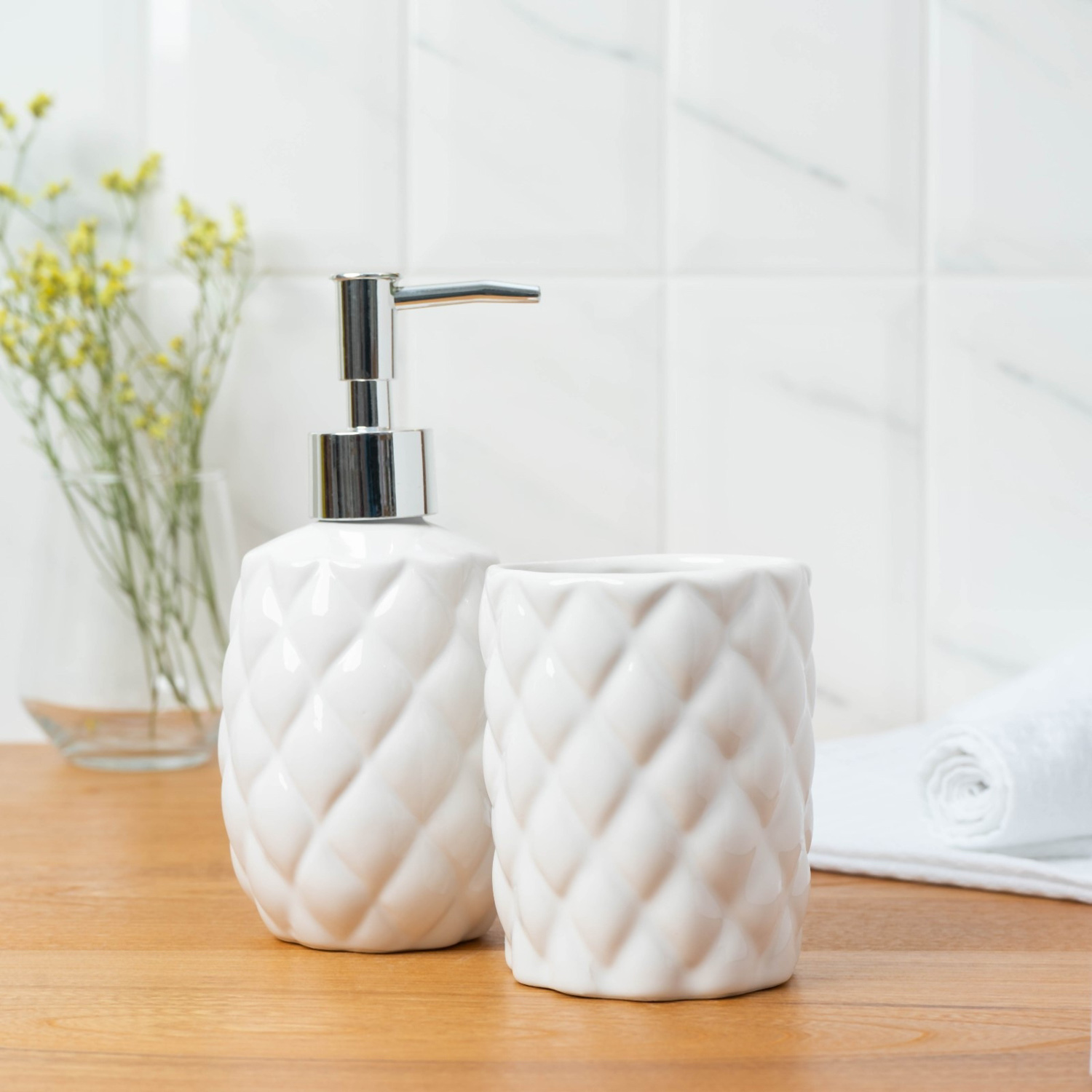 Набор для ванной Ромбус, 2 предмета (дозатор для мыла, стакан), цвет белый 6243798