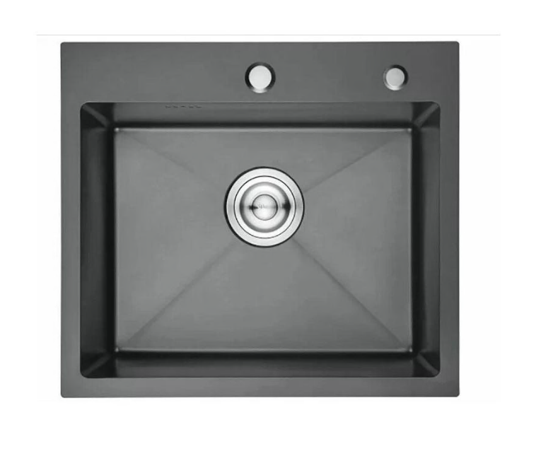 Мойка нерж. врезная 600х500х220мм DIKALAN (KNOIS) графит, с сифоном, отв. под смеситель, дозатор*1/3