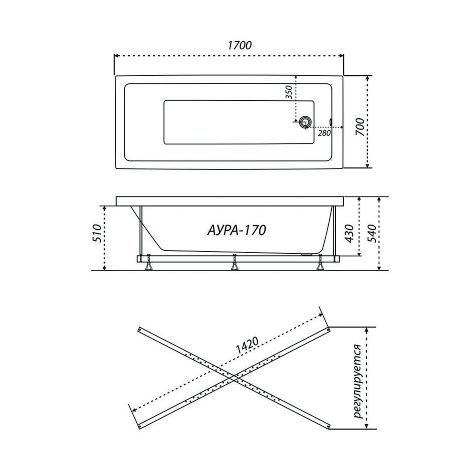 Чаша ванны Аура 170, инструкция |