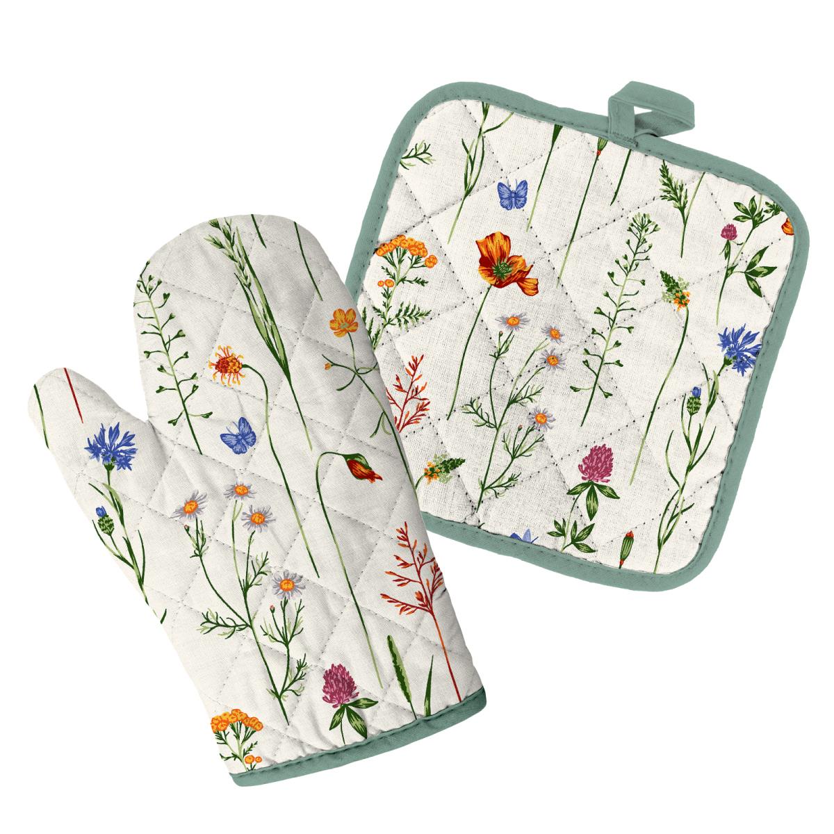 Набор прихваток Полевые цветы, варежка-прихватка 18х28, прихватка 18х18, 100% хлопок Vse DOMA *1