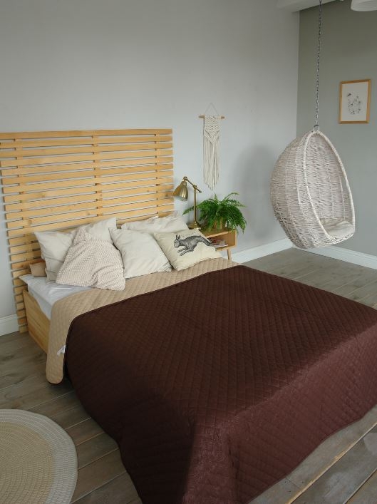 Покрывало 200х220см стеганое двухстороннее шоколад/бежевый Орхидея *1