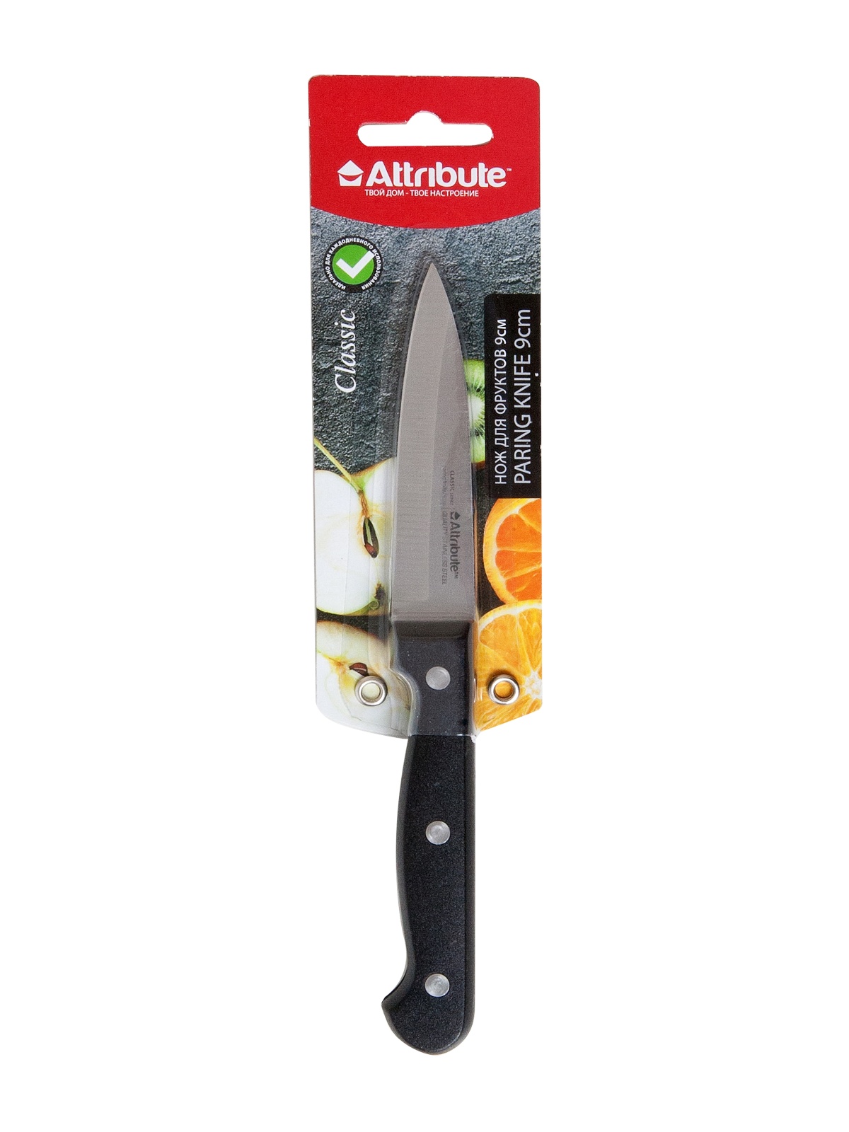 Нож кухонный ATTRIBUTE пл.р. Classic д/фруктов дл.лезв.9см AKC104 блистер *1/6/72