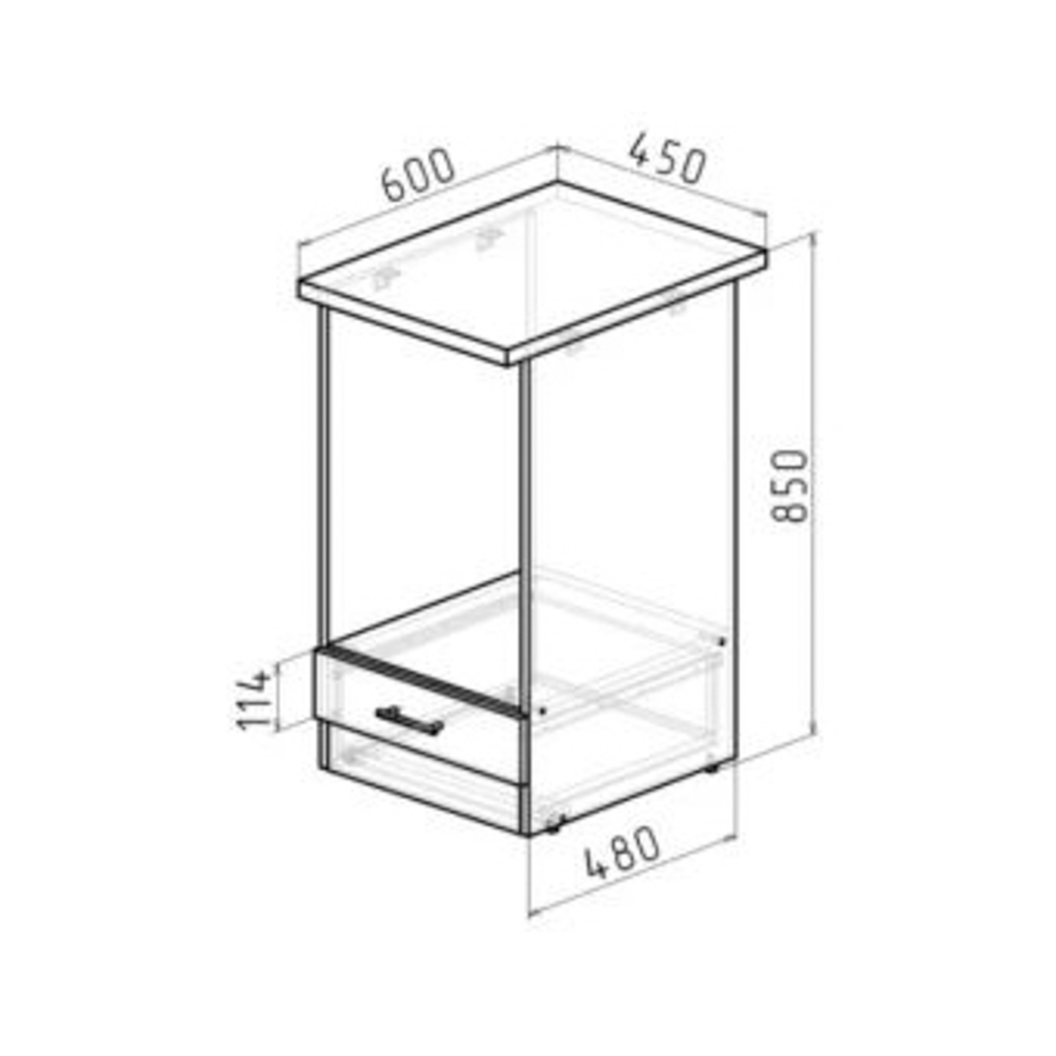 Стол под духовой шкаф 450х850х600 мм ГЕРДА, с ящиком, мокко