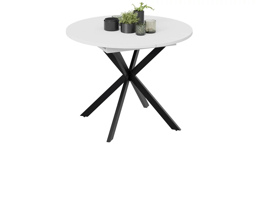 Стол обеденный круглый раздв.Мэдисон d1000(+315)мм h750мм Белый/Черный Муар ТриЯ*1