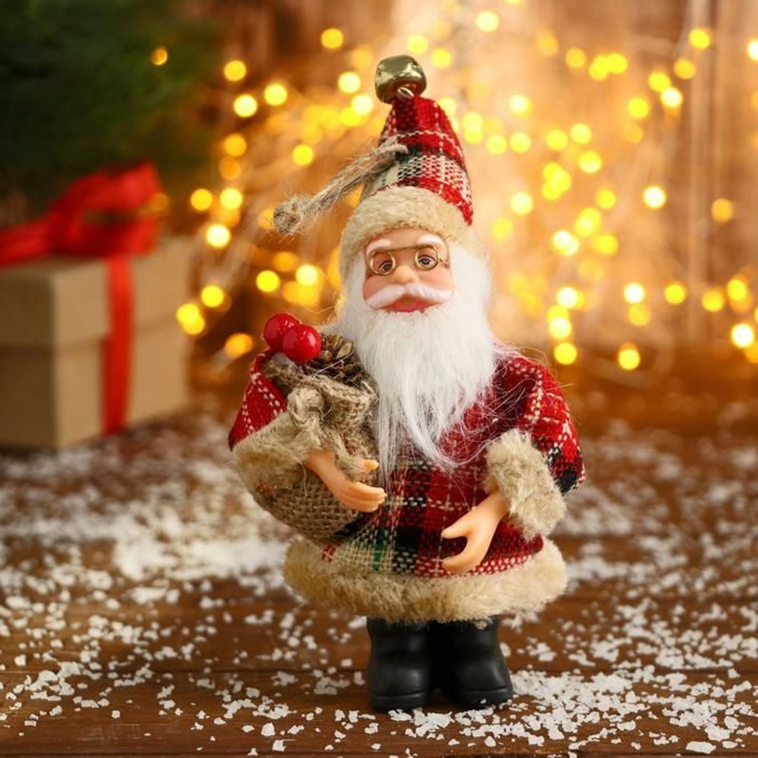 Дед Мороз "В красной клетчатой шубке с мешком" 10х14 см 3555378