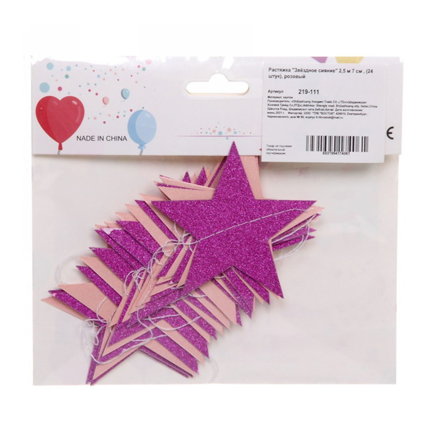 Растяжка "Звёздное сияние" 2,5 м 7 см , (24 штук), розовый