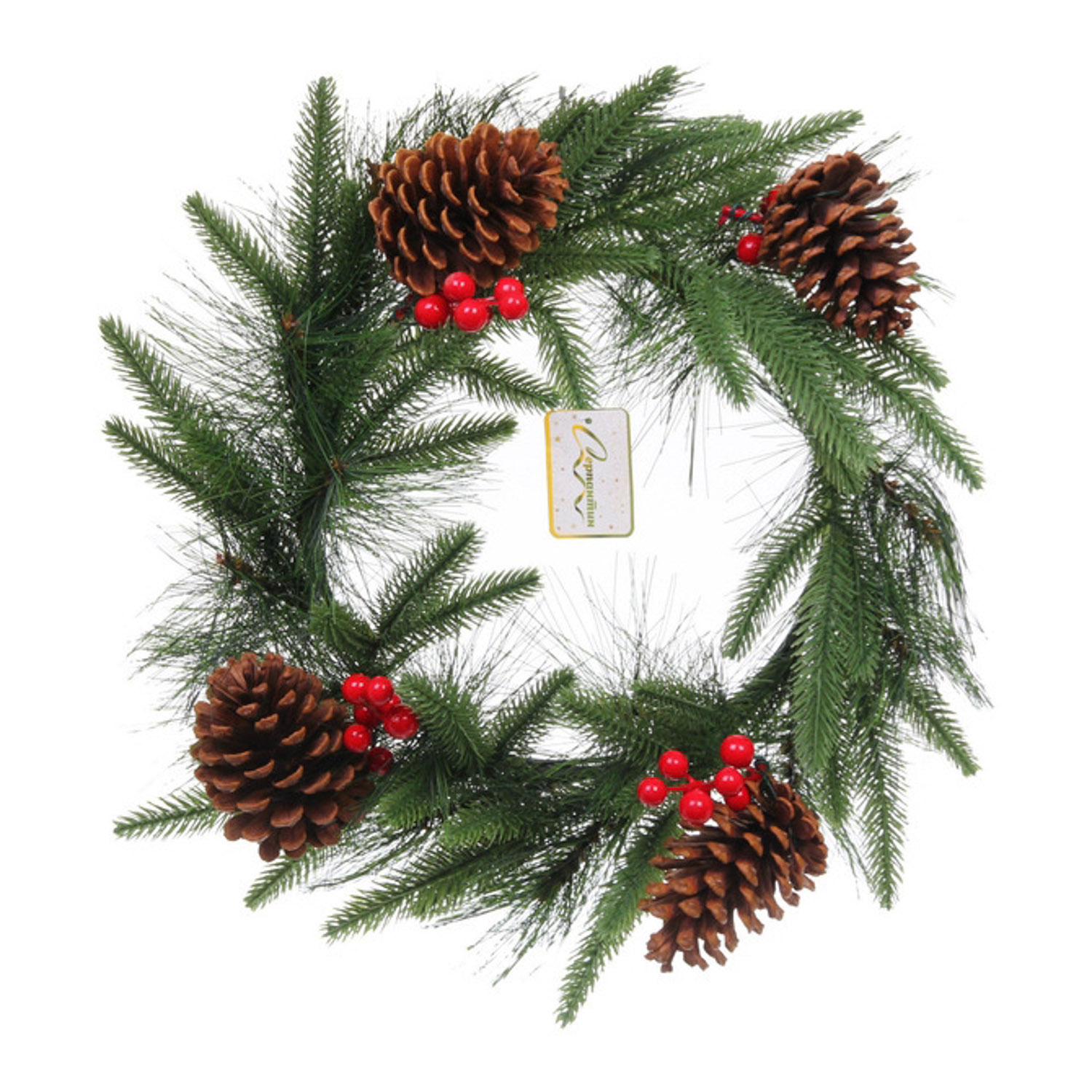 Венок хвойный "Волшебный зимний сад" d-40 см, леска, литой ПВХ, шишки, ягоды