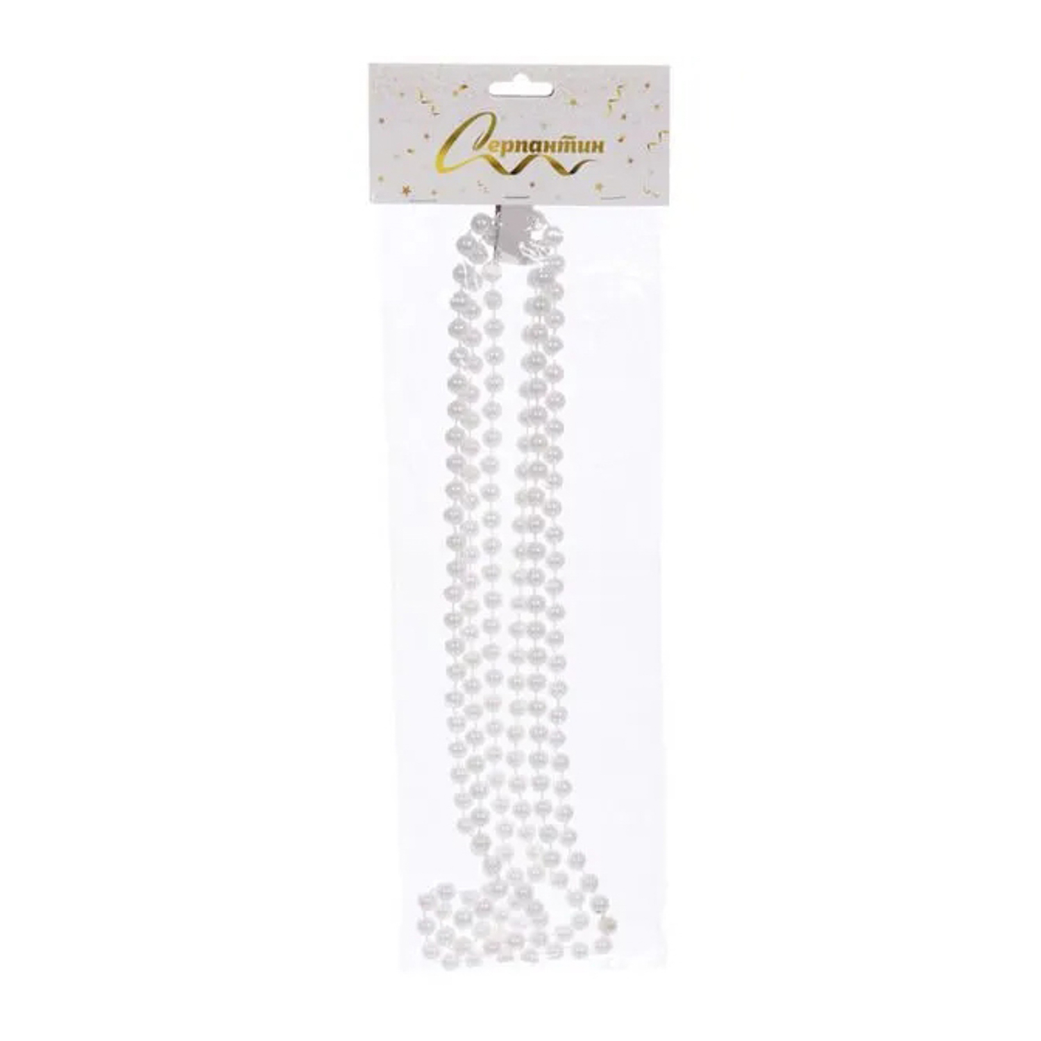 Бусы на елку Серпантин «Шарик средний», 200 см, 8 мм, белый