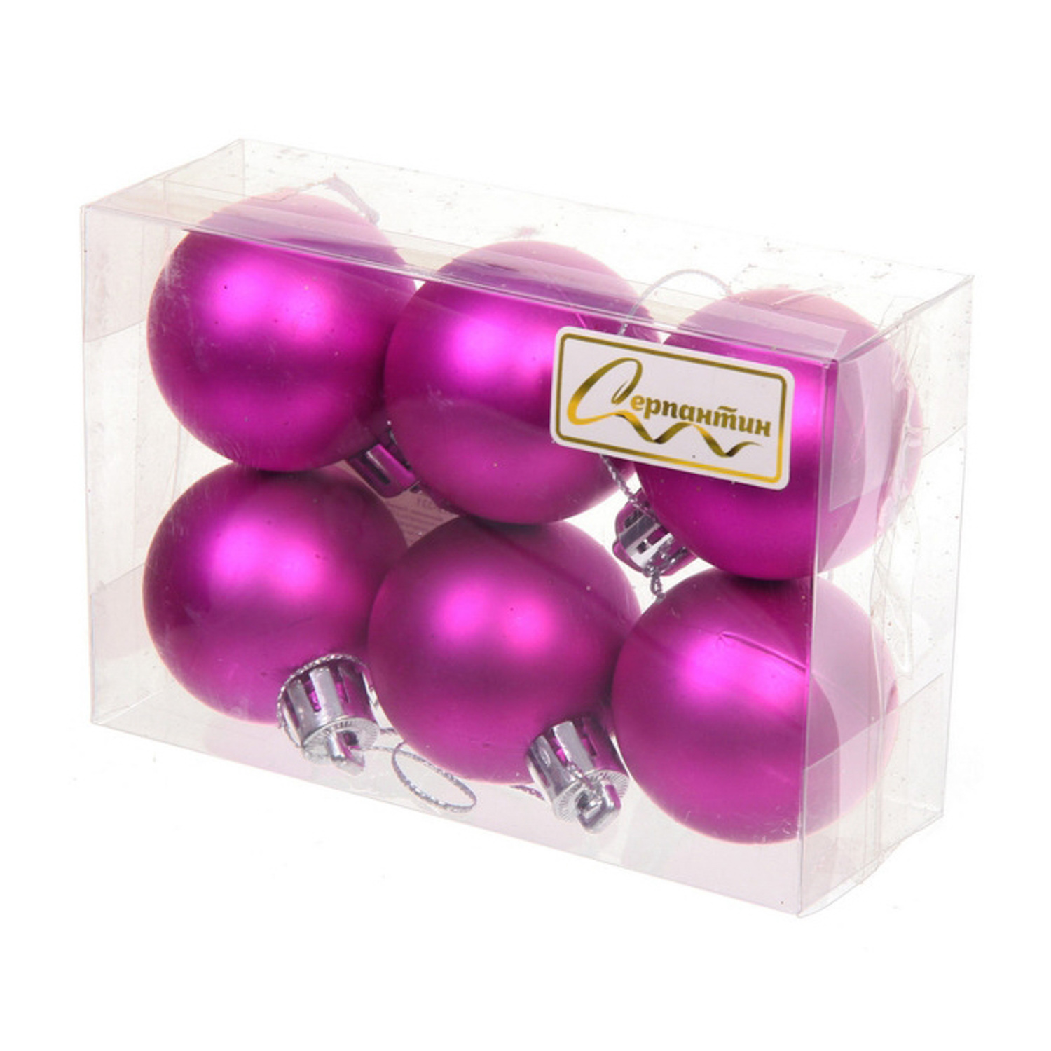 Новогодние шары 4 см (набор 6 шт) "Матовый", фуксия
