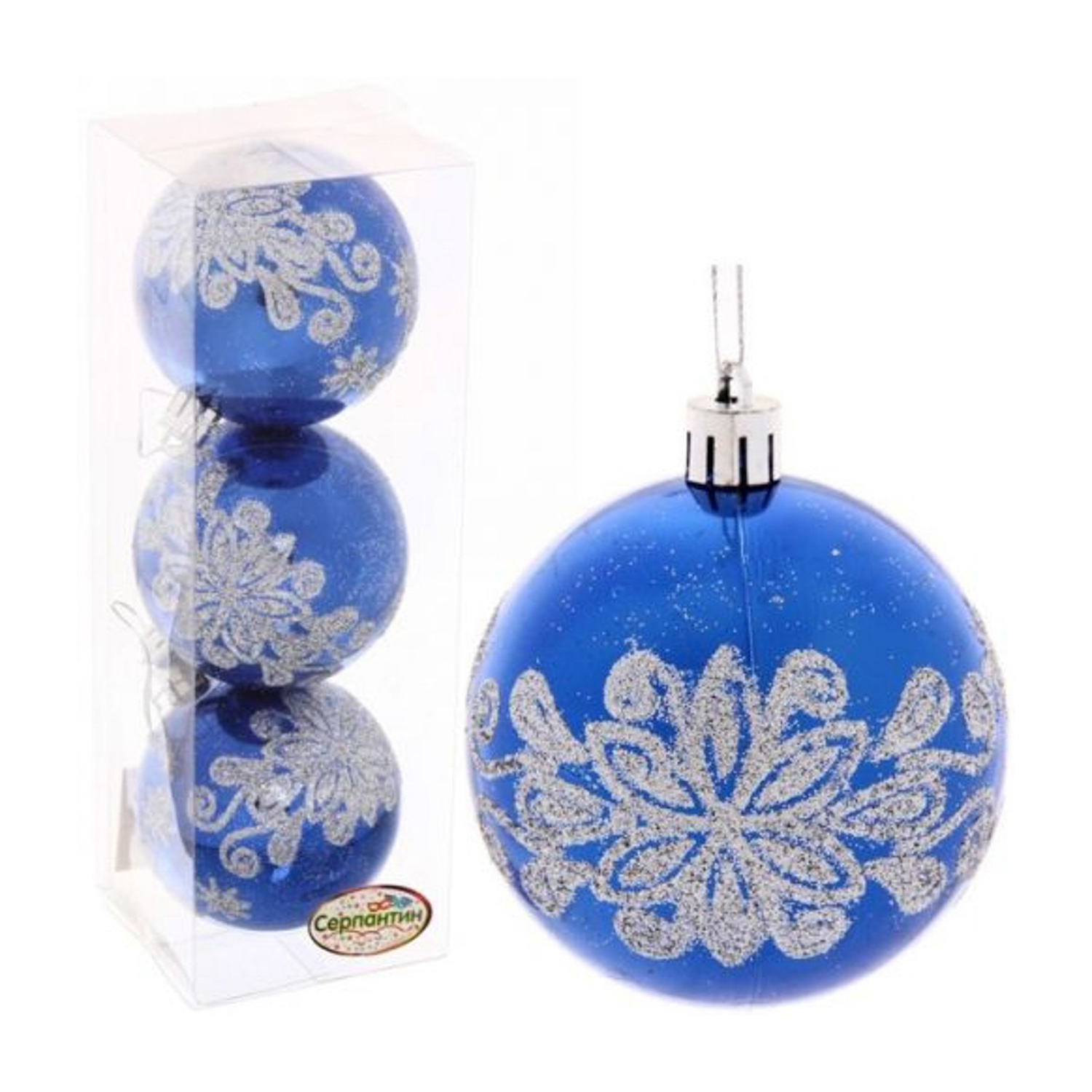 Новогодние шары 7см (набор 3 шт) "Павлиний хвост", синий