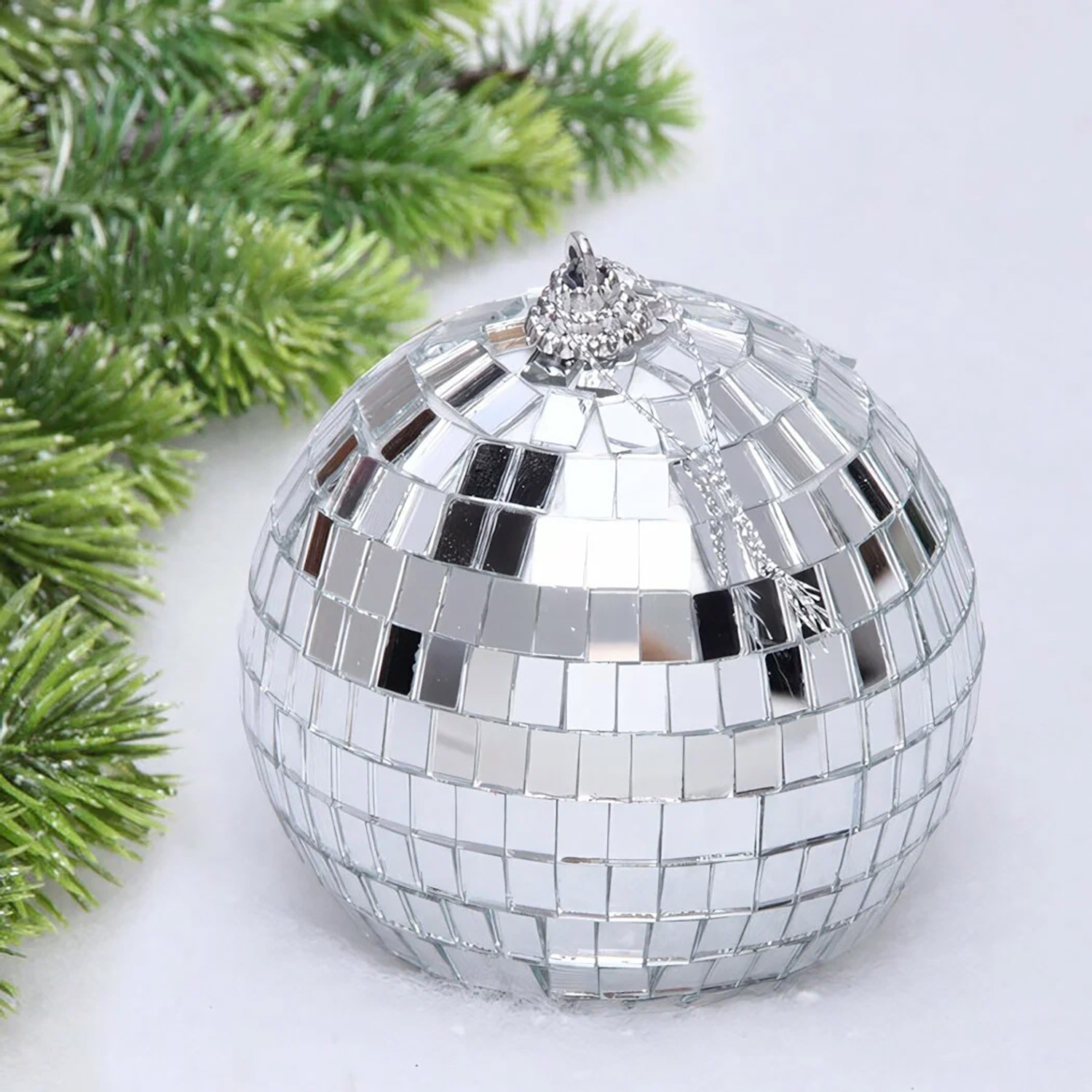 Новогодний шар 10 см "Shining Disco", Серебро