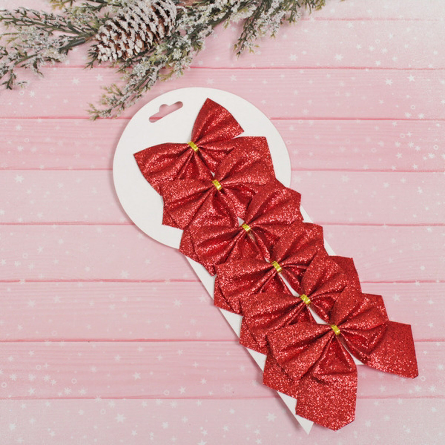 Набор бантов на елку «Зимнее очарование», 8.5х9 cм, 6 шт., красный