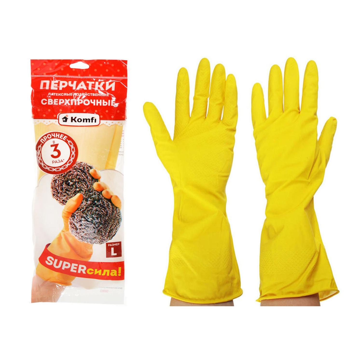 Хозяйственные латексные перчатки Komfi предназначены для защиты рук от мелких повреждений, грязи, краски и мыльных жидкостей. Сетчатая поверхность ладони и пальцев обеспечивает надежный заперчахват скользких предметов и комфотрную работу с мыльными растворами.