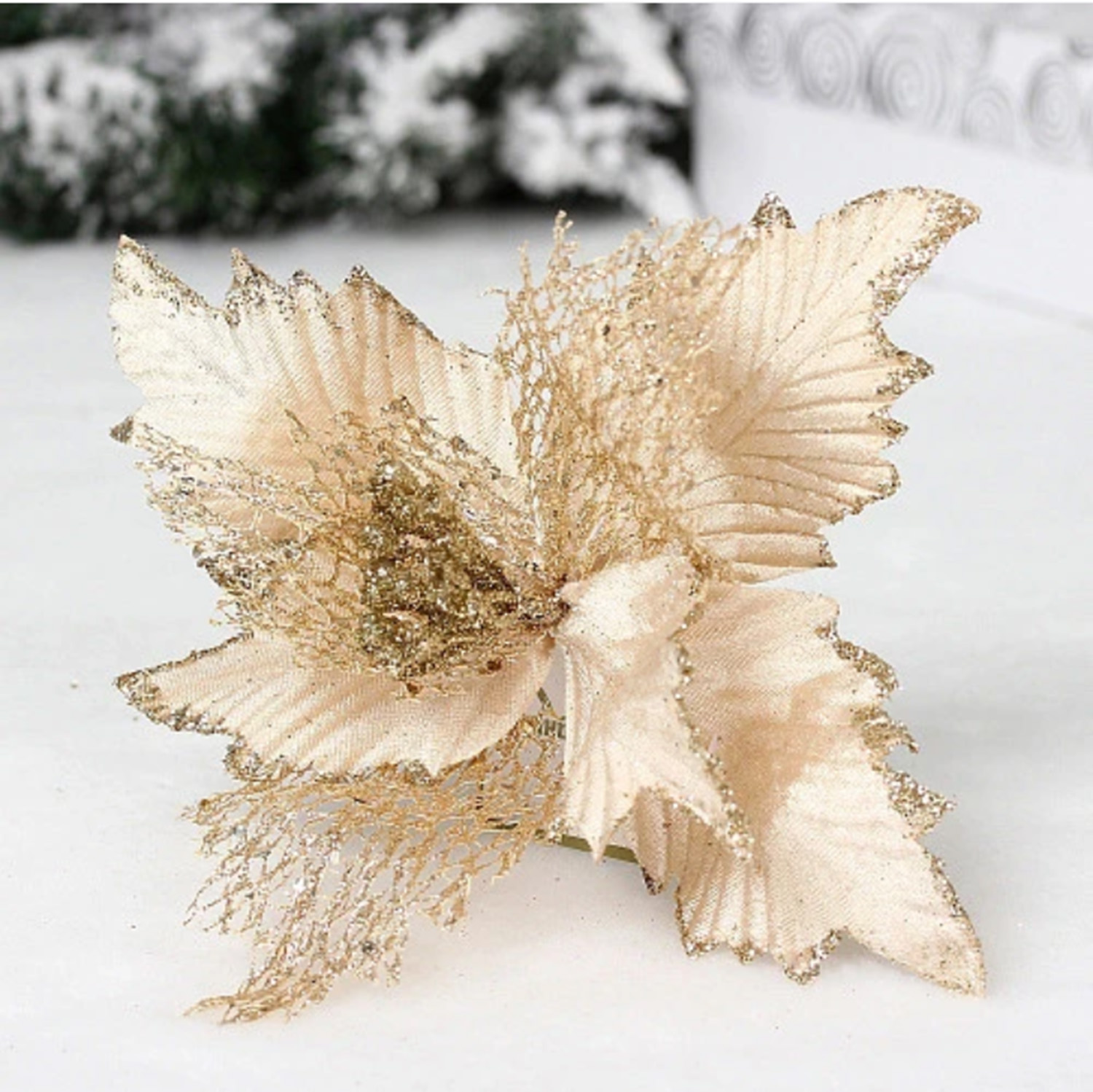 Украшение новогоднее "Пуансеттия - Сказка" 23 см, Шампань
