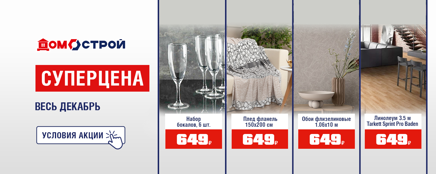 Только до 31 декабря в ДомоСтрой суперцены на товары для уюта! Успейте заказать на сайте или приобрести в магазине.
